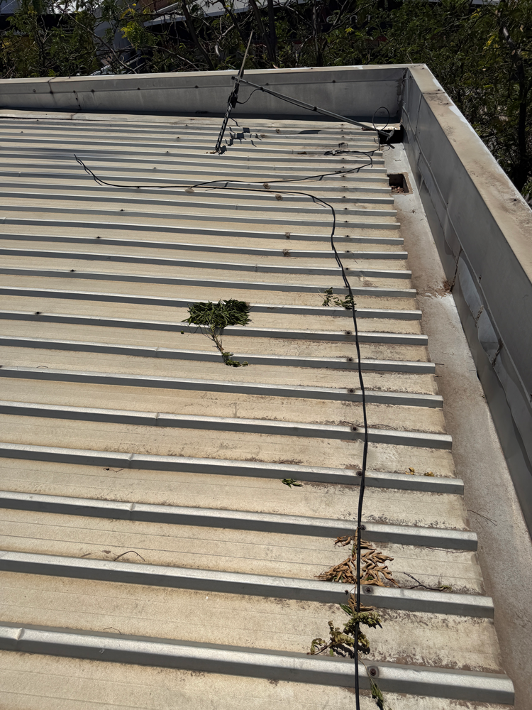 The building façade was lined with asbestos wall panelling, which meant that setting up ladders or accessing the roof in a typical manner would pose unnecessary risk and was not an option we were willing to consider.