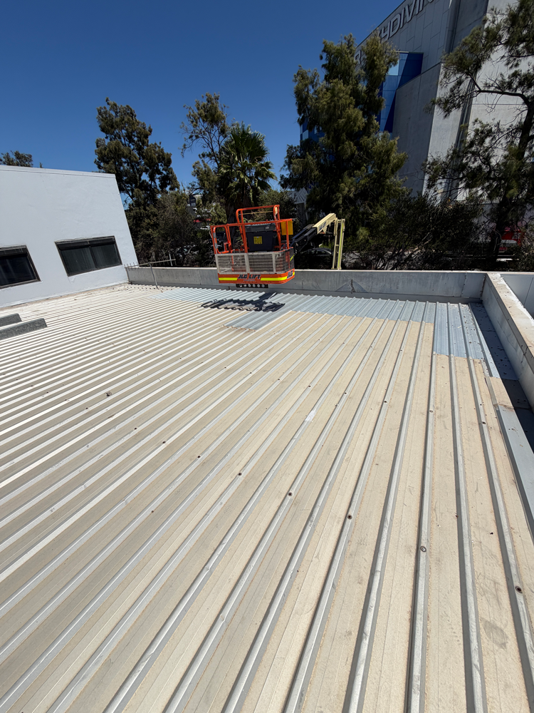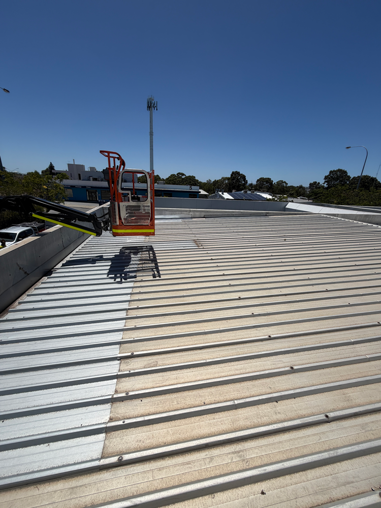 Our team coordinated with all relevant stakeholders and arranged the use of an Elevated Work Platform (EWP) to gain controlled access to both the lower roof and the warehouse roof areas.